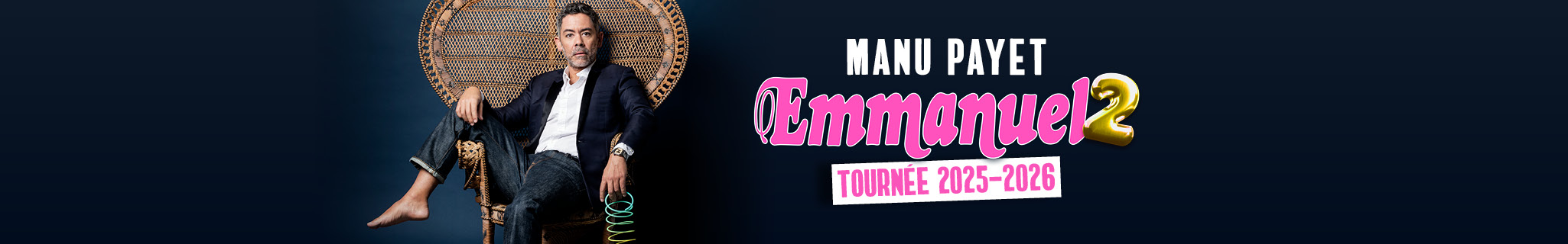 « Emmanuel 2 », le one-man-show tendre et hilarant de Manu Payet, continue sa tournée en 2025. Venez découvrir Manu Payet qui vous emporte dans son spectacle avec toute la simplicité et la décontraction qu’on lui connait, et qui donne l’impression de passer une soirée entre potes.