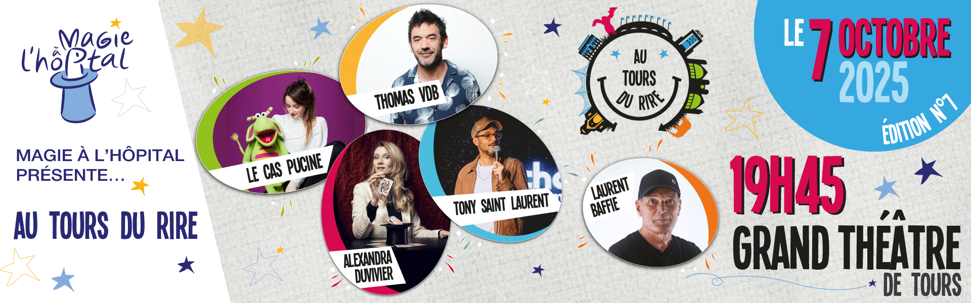 Cette année encore, Magie à l’hôpital organise son grand festival d’humour, Au Tours Du Rire, au Grand Théâtre de Tours. L’ensemble des bénéfices permettra la réalisation de 20 rêves d’enfants hospitalisés ou en longue maladie !
